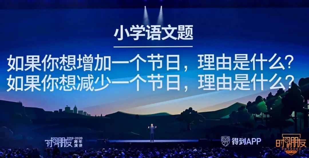 2019年12月31日20:30,上海东方体育中心,罗振宇“时间的朋友”跨年演讲如约而至。 罗胖曾发下大愿望:跨年演讲要连办二十年。今年是第五场,也是倒数第十六场。 今年的演讲主题是——基本盘。也就是不去看那些一惊一乍的标题,人云亦云的情绪,而是转过头,看手中的资源,脚下的道路。只有基于基本盘,才能看清我们自己的努力方向。 以下是跨年演讲精华版全文,与你分享。 第一部分:开场 2019年马上就要过去了。你的心中有没有一个特定的人,在这一年、在某一刻,曾经点亮了你? 我有。 此刻,我想向他致敬,贝聿铭先生。 2019年5月16日,贝先生离开了这个世界,享年102岁。 他是一个在世上留下了很多座纪念碑的人。但是,你如果去读他的传记,会发现,几乎他的每一个建筑作品,在当时都面临责难和挑剔,都是历经千难万险才来到世间。 曾经有人问他:你怎么看待外界对你的挑剔? 贝聿铭对此的回答是:“我从来没有考虑过这些问题,因为我一直沉浸在如何解决自己的问题中。” 你,我,每个人都会有过这样的“贝聿铭时刻”。不论你做过什么、在做什么,你都会遇到形形色色的挑战。怎么办呢?贝先生的这句话是我听过的最好答案。 那么,这一次,我们解决什么问题呢? 经济学家何帆会回答,我们的经济基本盘是什么? 投资人黄海会回答,我们的消费市场有什么新机会? 金融学家香帅会回答,我们要挣钱,钱从哪里来? 教育专家沈祖芸会回答,我们每个家庭最焦虑的教育问题,在发生什么变化? 科技产业专家王煜全会回答,中国的科技创新被美国卡住脖子了吗? 国际政治学家施展会回答,中国制造世界工厂的地位会被替代吗? 我非常荣幸地能够代表他们发布他们的研究成果。 说到解决问题,不妨先说一个我的问题:搞清楚跨年演讲是为谁服务的。 去年,我们讲了一个词,叫“做事的人”。后来,我遇到好多人,都说对这个词特别有认同感。但是,我觉得好像还是很模糊,应该更具体才是。 用两件事来描述,可能更清楚。 第一件事,是关于图书馆的。公共图书馆有一个责任,就是为市民举办各种各样的文化类活动。 2019年,我听到一个数,说有一家地级市的图书馆,才100多名工作人员,一年办了5000场活动。这个数给我惊到了。什么概念?你算下来,平均一天比13场还多。这家图书馆就是浙江嘉兴图书馆。 图书馆,这个东西好像已经很多年不在我们视野里了。在我们心目中,它应该是一个冷清的地方。嘉兴图书馆为什么这么热闹?5000场活动都干了啥? 我们自己可以先在脑子里想想,比如针对老年人,你要是办活动,你能想到的题目是啥?琴棋书画?养生保健?你看,想象力差了点吧。因为在很多人心目中,老年人是退出了社会参与的一群人,找个乐子,打发时间,安度晚年就行了。 但是嘉兴图书馆可不是想,他们是真干。一干就知道,根本就不是这么回事。 首先,很少有老年人愿意报名参加一个带“老年”字样的活动。更重要的是,老年人恰恰需要的是社会参与。所以,他们为老年人开发的讲座活动是:怎么用智能手机?学会了智能手机,就可以查公交线路、淘宝购物,甚至自己上淘宝卖货了。 最受欢迎的讲座,你可能想不到,是怎么做电子相册。拍照片,选照片,配音乐,上字幕,发到微信群里,做完特别有成就感。这是老年人力所能及的一项创造性活动。请注意,重点是“创造性”。这既是这家图书馆对老年人发自内心的尊重,也是自己所要承担的社会责任的一种高级的理解。 你看,就是这样通过在真实世界的摸索,嘉兴图书馆一年办出了5000场活动。 什么叫“做事的人”?他们不是在解决一个个想象中的问题,他们是在回应一个个真实世界的挑战。 如果我认同这个理念,到底怎样回应真实世界的挑战呢? 今年,我偶然翻到曾国藩讲的一个故事。农村里,有个人出门,看到在一条很窄的田埂上,俩人顶上了,谁也不让谁,谁也过不去。为什么不让呢?因为俩人都挑着很沉的担子,路太窄了,谁要让,谁就得从田埂上下去,站到水田里,沾一脚泥。 你作为一个旁观者,想上去劝,咋劝呢?谁也不服气啊。 那曾国藩的故事里,这个旁观者是怎么做的呢? 他走上前去说,来来来,我下到田里,你把担子交给我,我替你挑会儿,你一侧身,不就过去了吗? 你看,只要你的身份稍稍转换一下,从一个旁观者,变成一个置身其中的人,把自己放进去,是不是一个看似无解的事,就有了答案? 曾国藩管这种方法叫:躬身入局。 什么叫“做事的人”?不是置身事外,指点江山。而是躬身入局,把自己放进去,把自己变成解决问题的关键变量。 但是,用“做事的人”来形容你们,还是觉得有点不到位。我得找到一个新词。 有一天我的同事,得到大学的教研长蔡钰给我讲了一部老电影《风声》里的一句台词:“只因民族已到存亡之际,我辈只能奋不顾身。” 她记了这句话十年,只因为其中那个词——“我辈”。她说:我辈这两个字里,写着对世界的主场感和建设性。无论哪个时代,我辈都是最令人神往的那群人。 “我辈”只是个代词,本来没啥意义,但是每个人都能感受到,这两个字里面有一种骄傲的认同感。 直面挑战,躬身入局,皆为我辈中人。 你不要以为这是我的发明,我辈这种人,什么时候开始有的?从我们这个民族精神发源的地方,我辈这种人就有了。 西方经常说,我们中国人没有信仰。但是,中国人没有信仰么?今年我看到一段话,如果你把中国那些最著名