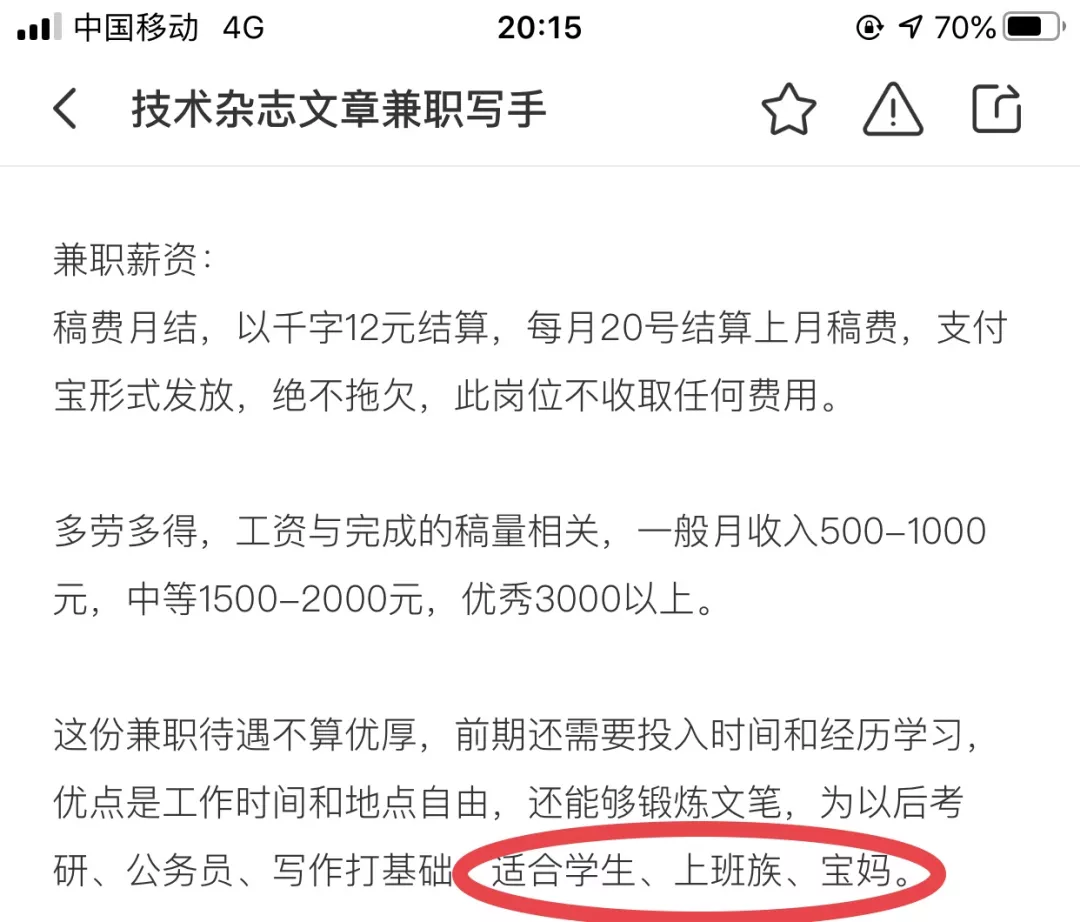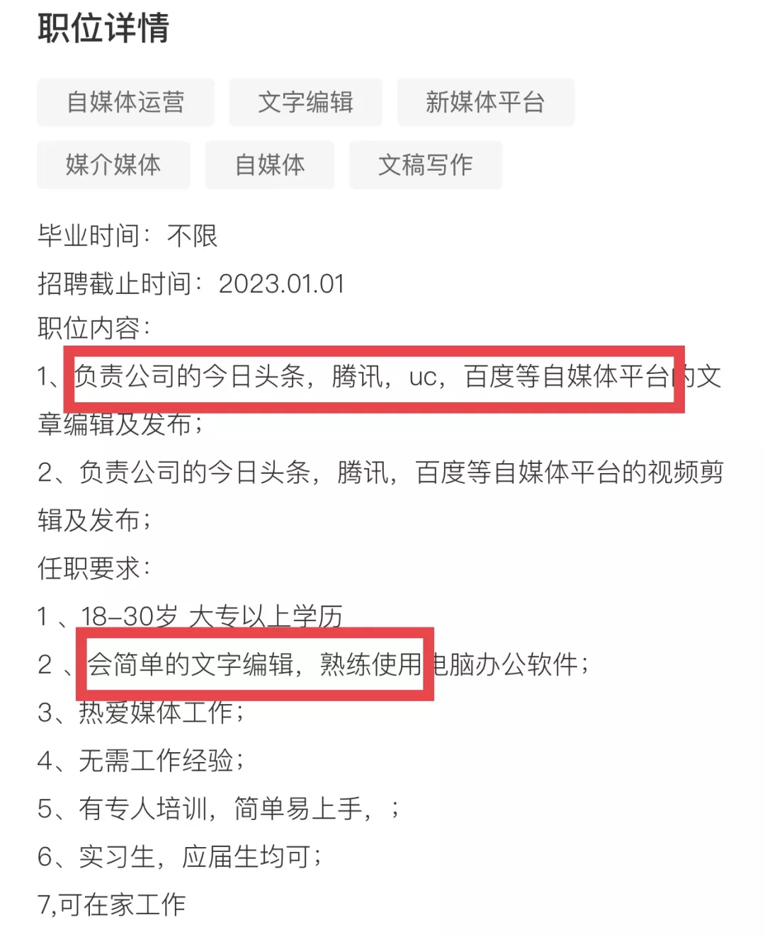 编者按:新媒体内容行业的流水线作业模式早已不是秘密,灰色生意经的兴盛背后,是大量廉价劳动力的支撑,其中就有不少在校兼职的大学生。本文的作者正是亲历者之一。 在校期间自媒体兼职写手的经历,为她带来微薄但也是自食其力的报酬,同时让她接触到了另一面的爆款密码。今天的推送将借这位大四学生的视角,讲述她如何看待这段经历以及这个行业。