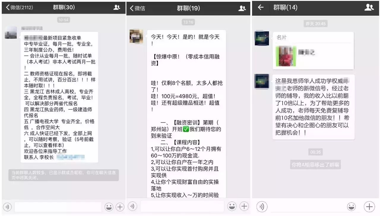 日前,有用户向新榜反映最近很多用户被强制拉群,多者十几个群,接收各类骚扰广告,有些甚至在不知情的情况下成为群主。不仅如此,还有用户反映,有些群无法删除退出,举报之后才得以退群。目前,一些用户已向微信反馈情况,但暂未得到回应。