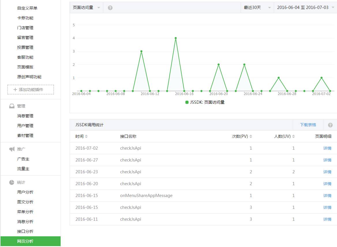 新榜讯 今天下午,微信公众号后台上线了一个全新的功能“网页分析”,位置居于公众号后台首页左侧导航“统计”里面。