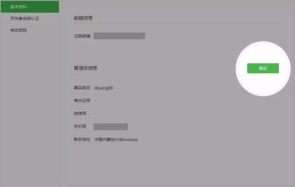已注册微信开放平台的开发者,请尽快登录微信开放平台,在“帐号中心 - 基本资料”补充和验证开发者身份信息、绑定管理员微信号,以确保帐号安全,保障相关功能的正常使用。