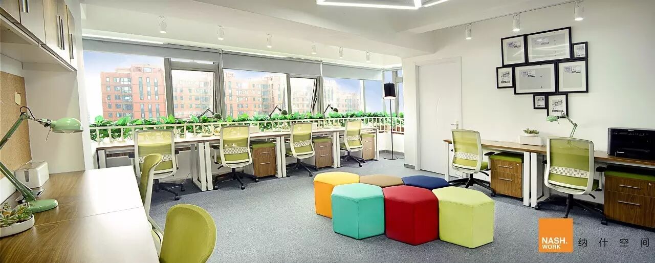 纳什空间的联合办公区践行的是共享经济下新型的办公模式,进入到联合办公区的创业公司可以共享办公空间、会客区、会议室等设施,办公区里会配备有健身房、咖啡厅、茶歇室、母婴室等服务配套。