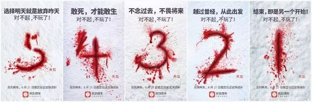 除了大规模的补贴活动造起一轮又一轮的声势之外,6月14日,易到开启了“对不起,不玩了!”悬念营销活动,通过连续多张染血倒计时海报的形式,将外界注意力锁定在6月21日的发布会上。