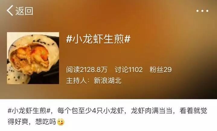 另外,第一时间试吃的网友也发来了各种测评,一波又一波自来水已经挡不住了。微博话题#小龙虾生煎#阅读量达到2128万。