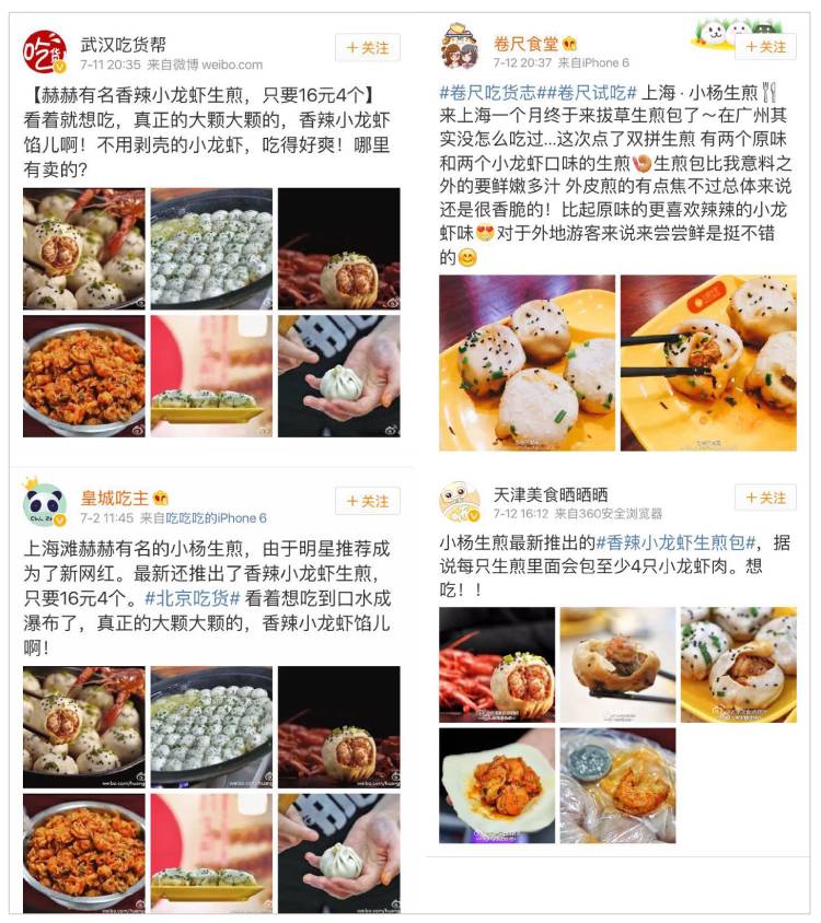 经过多个大号的深度推广,这款网红生煎在全国吃货当中无疑瞬间成了追捧的对象,在微博上,也有不少美食大V开始重点推荐。