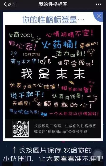 今天上午,一张写着各种溢美之词的黑底彩字图片,作为性格标签的测试结果,在无数人朋友圈刷屏。