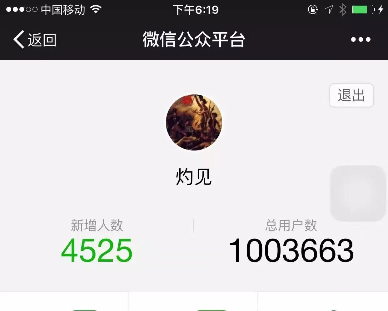 新榜讯 昨天,据公众号“灼见”的运营者张鄂介绍,“灼见”粉丝已突破100万。这个讲新知识青年故事的公众号创建于2014年3月14日,运营一年后吸粉30万。