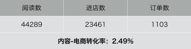 也许你觉得在电商平台上卖出1000只的销量算不上很高,但和销量形成对比的是,推荐这款背包的文章,并不像某些大号一样轻松收获10w+,而这篇文章的阅读量截至7月14日凌晨是44289,换言之,在看过文章的4万多人中,每40个人就有一个下单购买了这款背后,2.5%的转化率远超过许多内容电商。