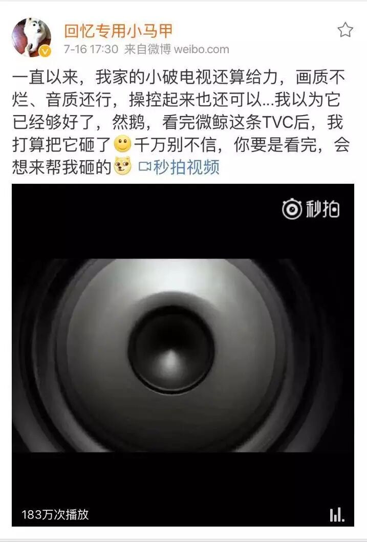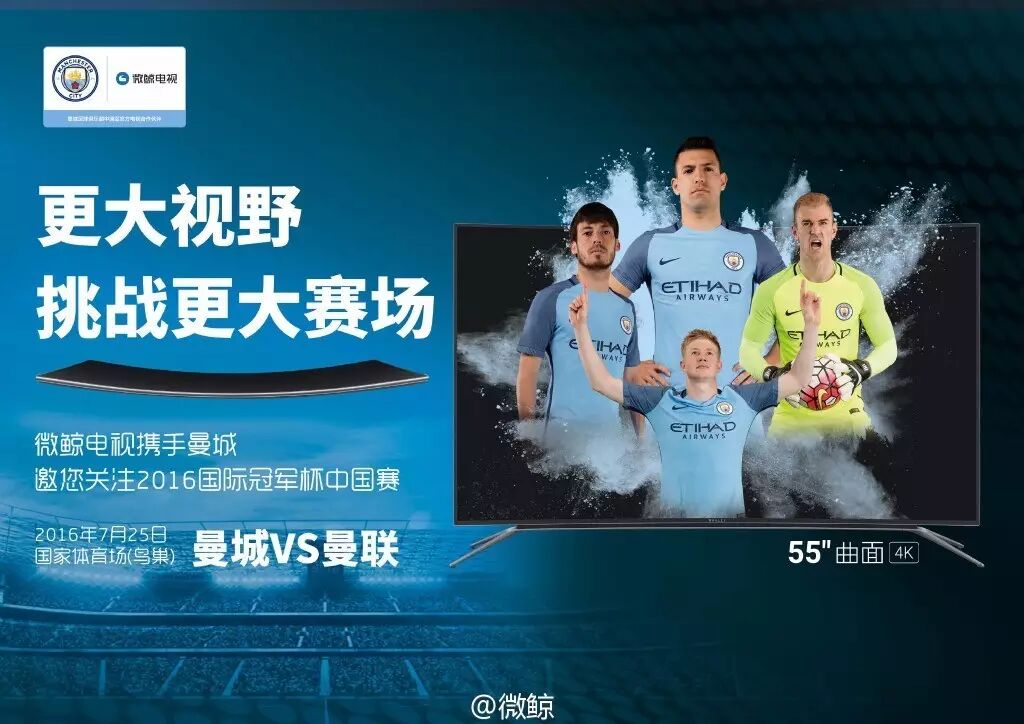 在家“葛优躺”,当然离不开一台合适的电视机啦!说到电视机,最近“黎叔”的微鲸电视倒是在营销上投入不小,4月份时高调亮相papi酱广告拍卖会,虽然没能中标但也轰动一时,最近又承包了整个暑期档的综艺节目,就连曼城中国行这样的体育盛事,也有微鲸电视的参与。