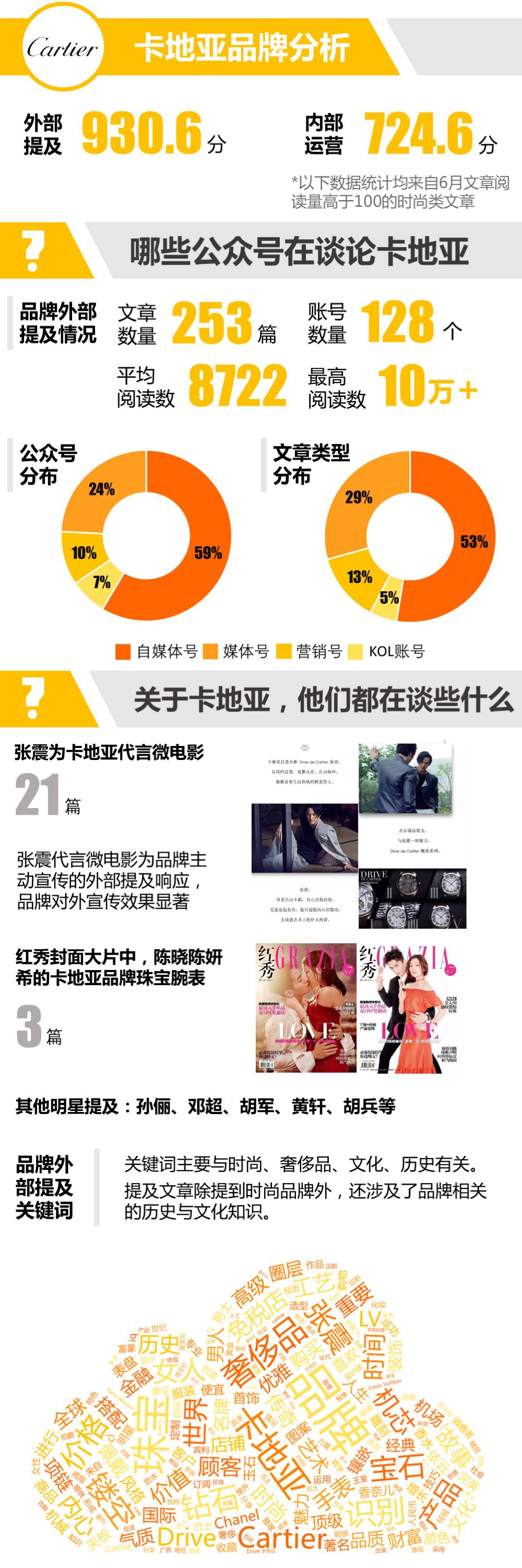 凭借外部提及的高分,卡地亚在珠宝腕表榜单中名列第五。近十分之一的外部提及文章为品牌微电影的转发,足以看出时尚类公众号对于卡地亚宣传推广的认可度。