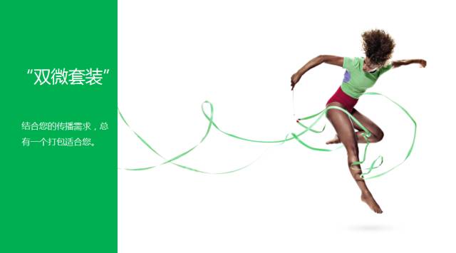 “双微套装”精选最优质的一线微信、微博账号,打包成六类各具特色的产品包:“官方媒体套装”“偏向男性粉丝套装”“偏向女性粉丝套装”“KOL套装”“时尚组合套装”“高性价比套装”。精准定位,靶向传播,总有一款适合你。