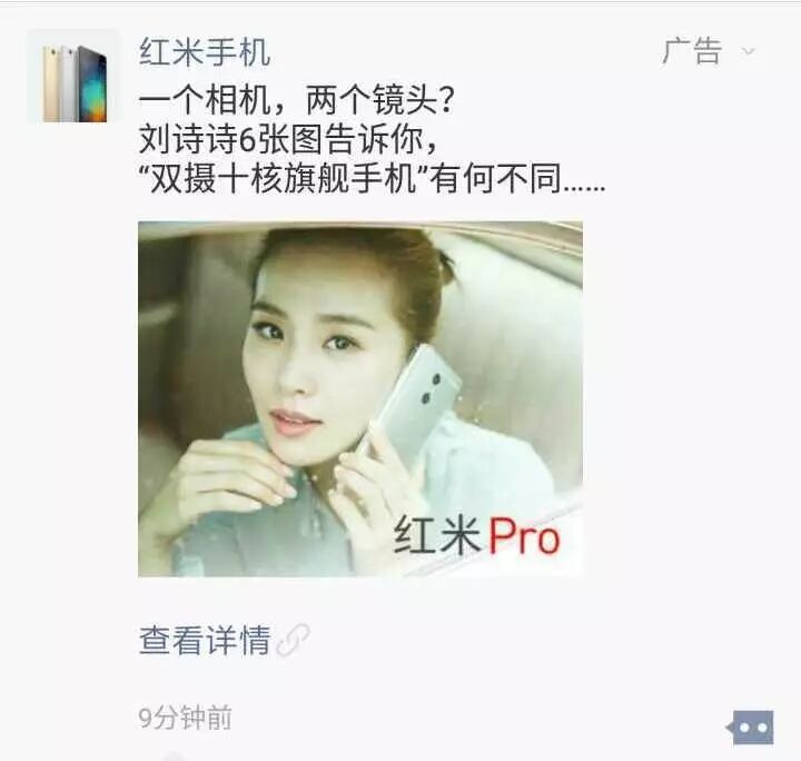 近日,随着红米Pro正式在发布会上亮相,红米手机也同步在微信朋友圈投放了广告。