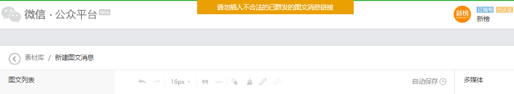 正在编辑的图文页面也显示无法保存。