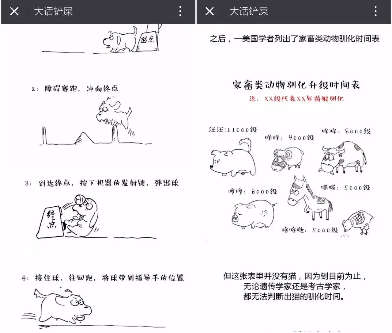 ▲公众号“大话铲屎”至今在各个行业推出的热文与增粉情况,每一篇都以漫画形式呈现,画风激萌可爱
