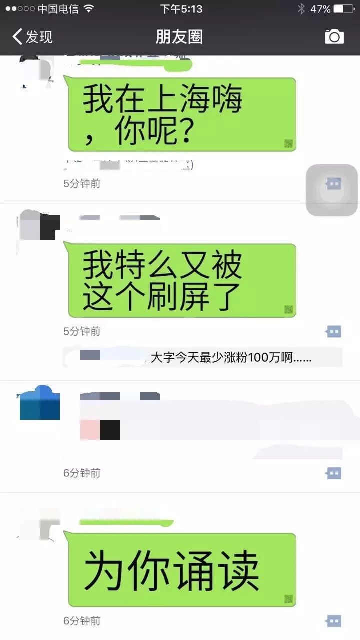 今天下午,朋友圈莫名被一张张大字图刷屏,点击图片会发现一个小的二维码,引导关注的账号为“大字”。关注该公号后,会弹出提示制作如朋友圈中所出现的大字图。