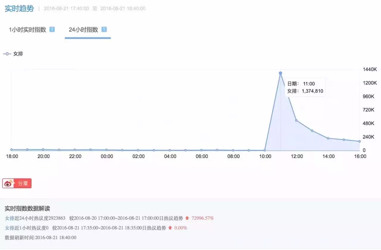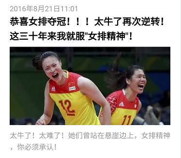 昨天11点,最后时刻惠若琪一记漂亮的探头得分,宣告中国女排战胜塞尔维亚的同时,仿佛也吹响了自媒体人跟进推文的号角。