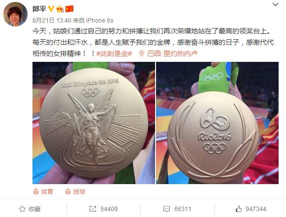 昨天午后,郎平那条在女排夺冠后发布的微博,迅速积累近百万点赞——“今天,姑娘们通过自己的努力和拼搏让我们再次荣耀地站在了最高的领奖台上。每天的付出和汗水,都是人生赋予我们的金牌,感谢奋斗拼搏的日子,感谢代代相传的女排精神!!”
