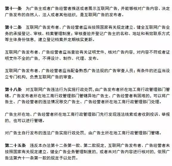 7月8日消息,国家工商总局发布《互联网广告管理暂行办法》(下简称“办法”),内容包括电商、搜索、社交等互联网全行业的规范,将于9月1日正式开始实施。“办法”全文有29条规定,其中不少可直接约束微信平台以及个人朋友圈发广告的行为,摘录如下: