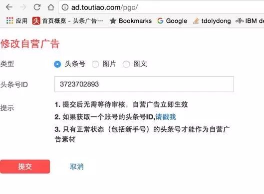 8月24日,头条号上线了自营广告支持头条号推荐功能,用户可以在“收益概览”栏中选择“自营广告”,在“设置”中直接选择投放某个头条号。投放头条号无需审核,设置之后即刻生效!