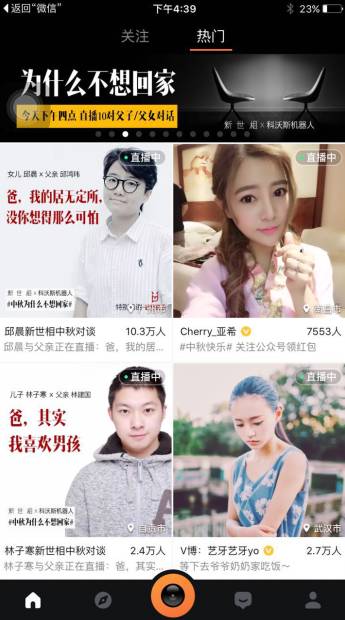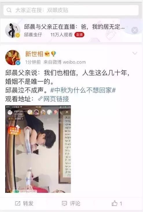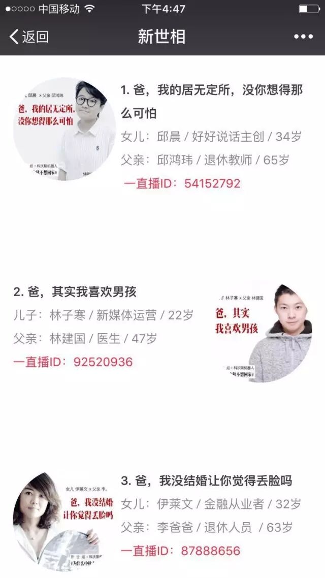 9月15日下午16点,十对父子/父女在“一直播”上进行谈话直播,直播20分钟后火速登上微博首页。