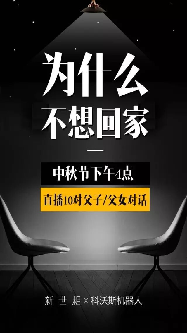 2个月后,还是赠送往返机票,还是针对北上广青年,“新世相”的征集活动又来了。今天上午11点,“新世相”以“中秋为什么不想回家”为主题,在下午4点同时开启10场直播,直播十对父子/父女对话,他们有人要和父亲谈谈他的离婚问题,有人决定向父亲出柜…… 这十位参与者系9月12日起公开征集而来。