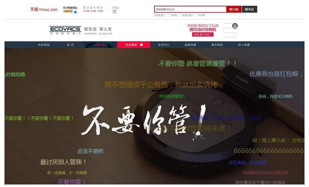 随后的5月,在科沃斯进行新品发布会之前,其天猫旗舰店首页商品全部消失,整个页面只有几个大字“不要你管”,并有弹幕不停刷屏。消息一出,在无数网友纷纷围观的同时,媒体对其围观的热度也迅速上升。