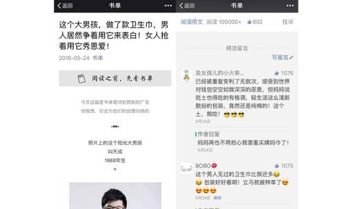 参考案例《书单:这个大男孩,做了款卫生巾,男人居然争着用它来表白!女人抢着用它秀恩爱。》