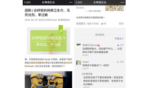 参考案例《女神进化论:团购丨会呼吸的纯棉卫生巾,无荧光剂、零过敏》