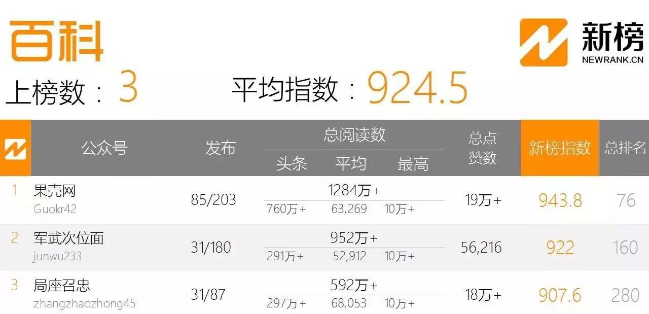 ▲在新榜公布的中国微信500强2016年8月份榜单中“局座召忠”位列第280名