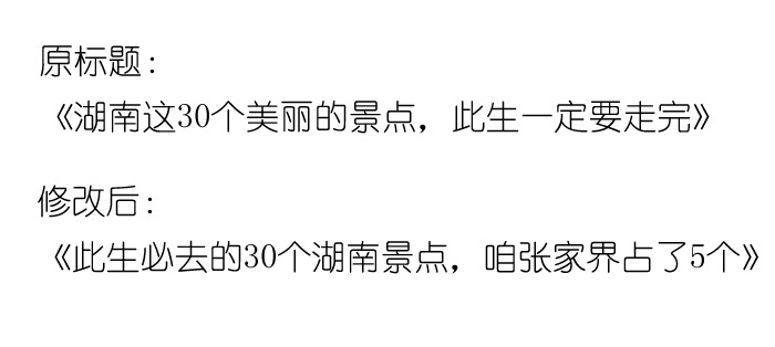 ▲案例源于湖南某地方号,“湖南”和“张家界”,两次迎合了读者的心理