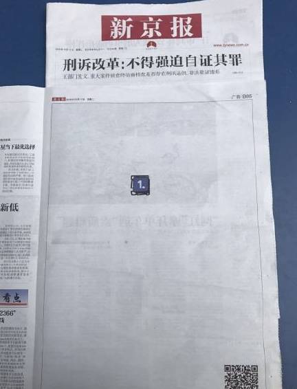 新榜讯 10月11日,有运营者向榜妹爆料,在阅读今天买的《新京报》时,突然发现广告版整个版面里只显示着一个“一点资讯”的蓝色图标。右下方则是一个二维码。