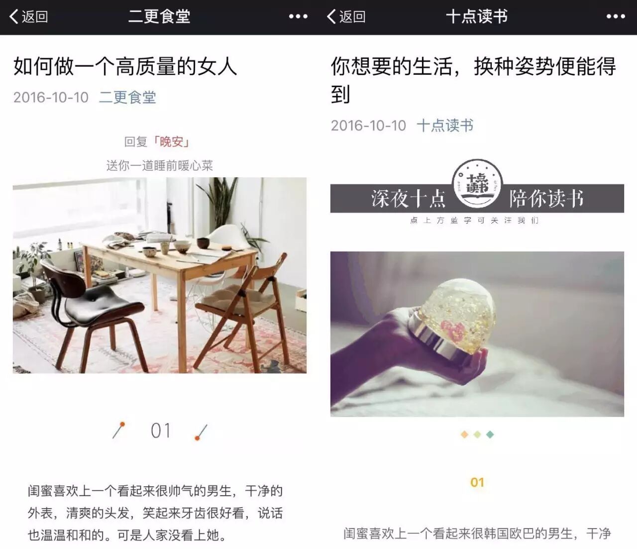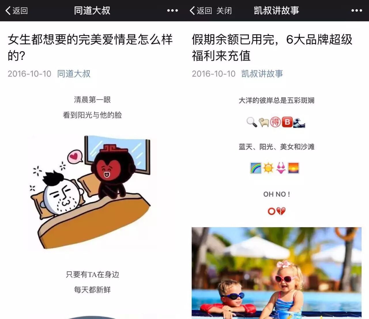 10月10日前后,行业大号“十点读书”“同道大叔”“二更食堂”“凯叔讲故事”,品牌服务号“良品铺子”“神州专车”各发布了一条图文,推广了同一个活动。