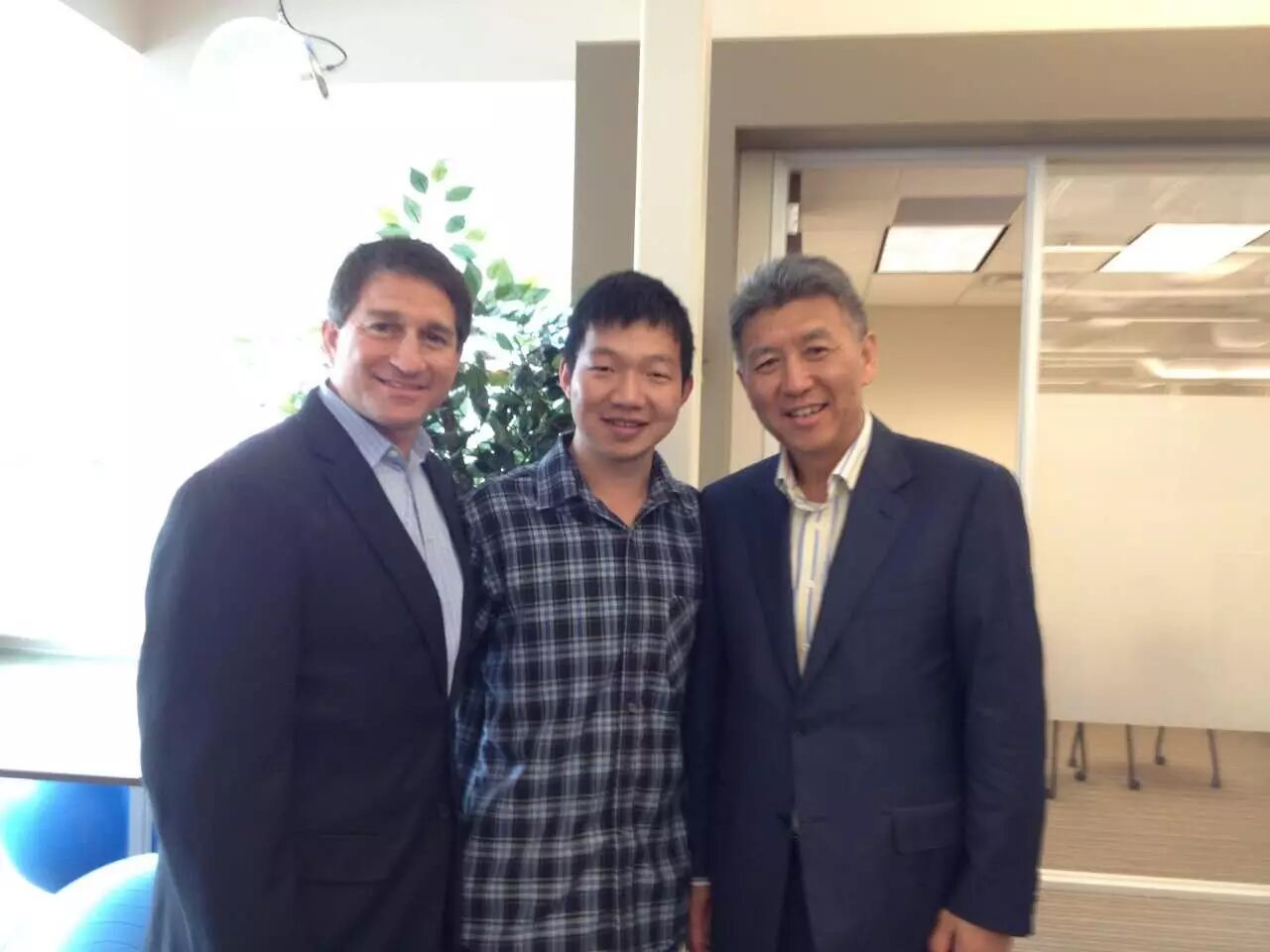 ▲ 中间为卢阳,左边是布什的科技顾问,右边是东软集体董事长刘积仁
