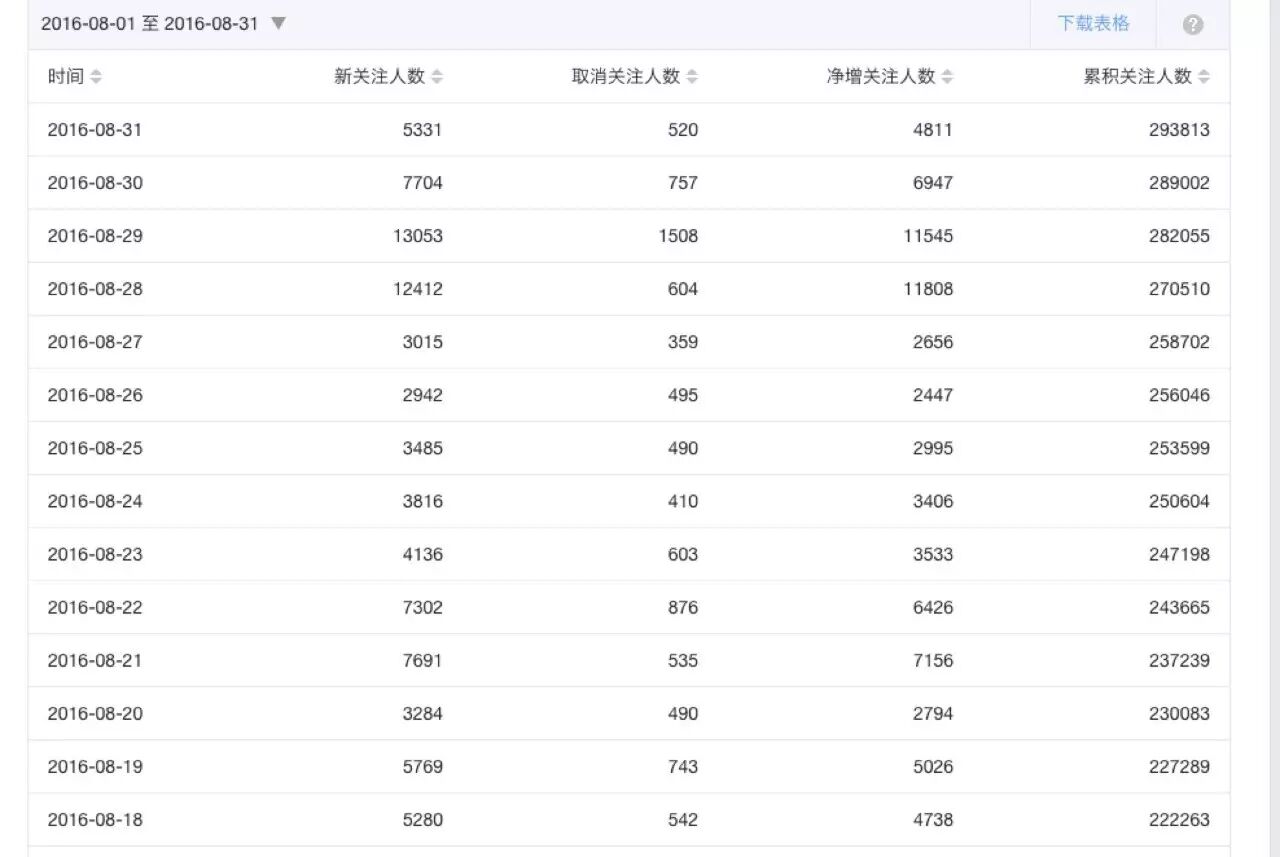 ▲后台显示的8月涨粉情况