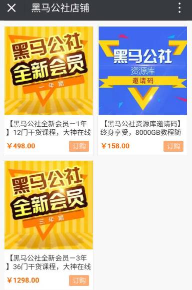 ▲“黑马公社” 的有赞商城截图