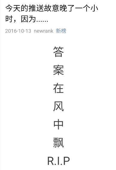 为了不在此轮刷屏中,被鲍勃·迪伦的消息彻底淹没,决定推迟发送一个小时。