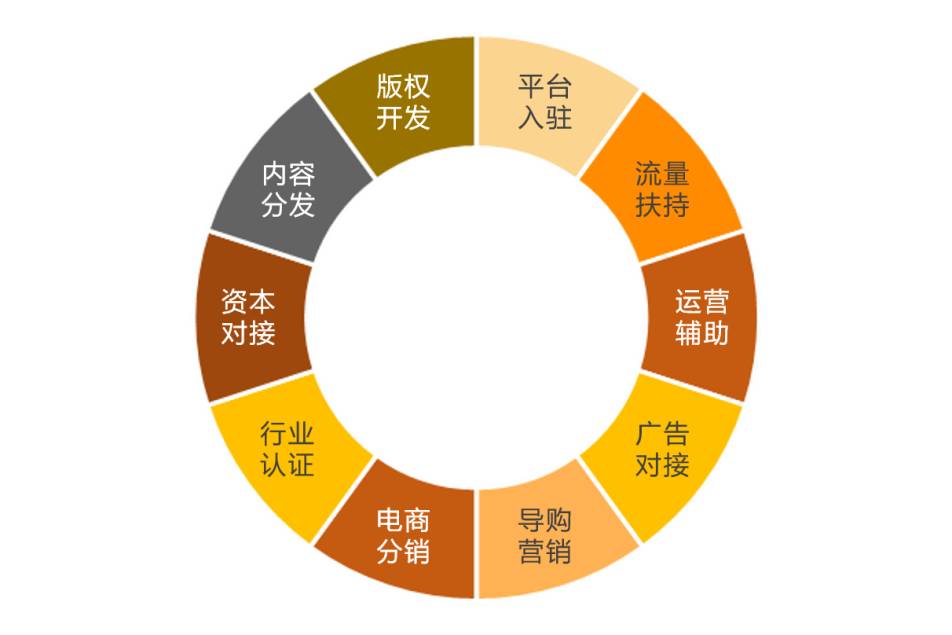 4. 链接平台、广告、版权、电商和产业资源,帮助创业者完成商业布局;