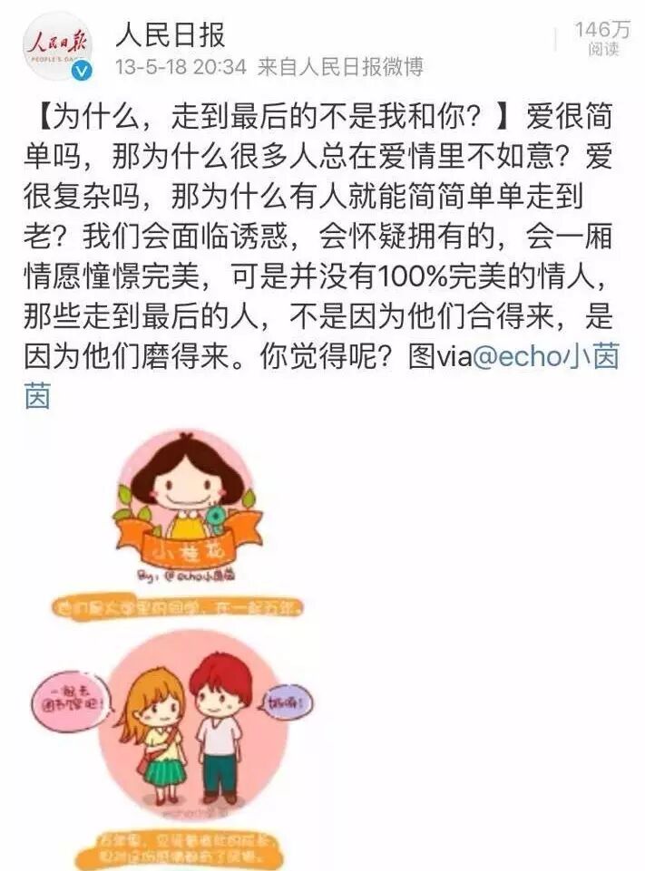 echo小茵茵:有很多粉丝都是从微博开始一直关注跟着到微信公众号,从学生到职场再到妈妈,一直陪伴着,不发推送,后台会有人问怎么今天没漫画,感觉他们每天都在等我;当然也有经常私底下有交流,他们有什么不开心的,想吐槽的,有时候都经常找我侃。