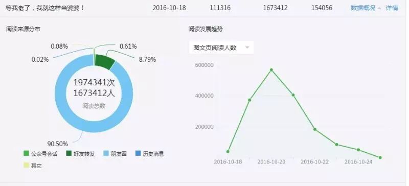 虽然漫画题材有别于图文,日更难度也更大。但从数千阅读到头条稳定在4万左右,用心做内容的坚持还是为“echo小茵茵”带来了意想不到的回报,就在这个月,他们连续诞生了3篇10w+爆文,10月18号那篇刷屏的《等我老了,我就这样当婆婆!》更是创下惊人的170w+阅读,成为名副其实的朋友圈爆文。
