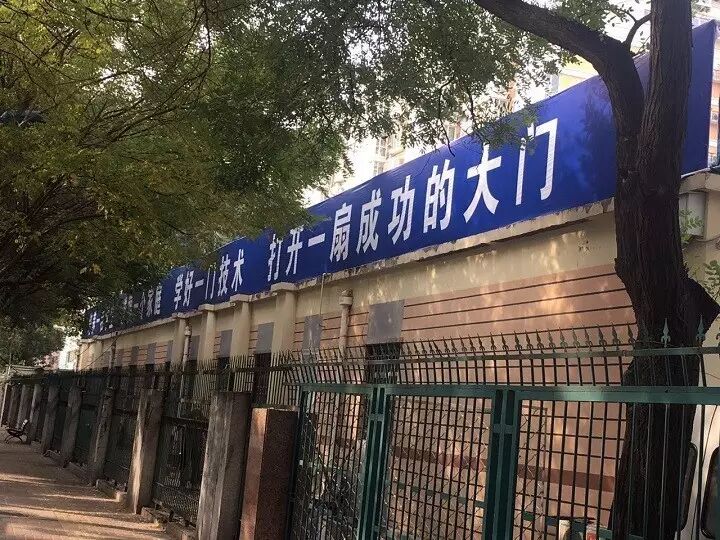 这个校区的两个大门都紧闭,偶尔有教职人员进出。附近一个清洁工阿姨告诉我们,学校采取半封闭式管理,中午和下午放学后才允许学生出入。我们的参观请求被门卫大叔果断拒绝,与校方联系也被严正告知,学校不接受参观,亦不接受采访。