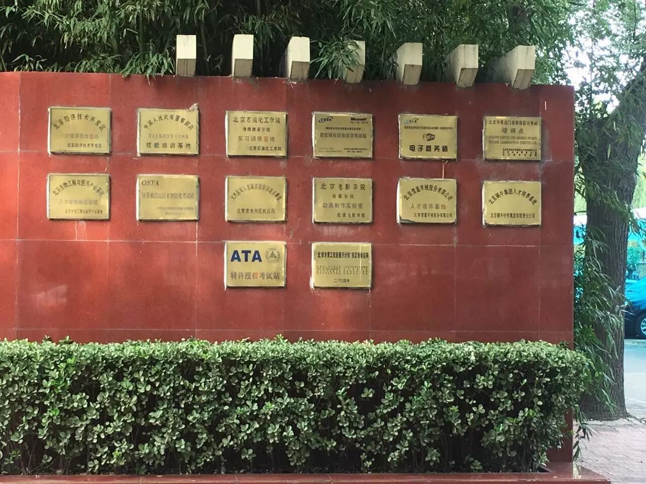 门口玻璃上孤零零地贴着一张“微奥互动”的活动海报,教学楼左侧的墙壁上挂满了与学校合作的授权项目牌子。大都是各种考试点或者培训基地,说明这家偏重职业技术教育的学院还是非常重视实践的。