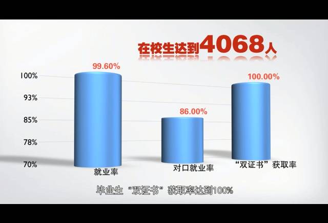 如今就业形势严峻,本科生、硕士生就业都是压力山大,但是从新媒体技师学院2014年9月验收视频的数据显示,就业形势“风景这边独好”,2014年学校的在校生4068,就业率99.6%,对口就业率86%,双证获取率高达100%。
