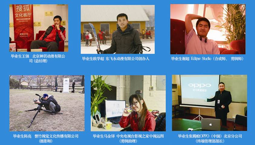 招生简章中列出了不少高大上的就业单位,包括中央电视台、北京电视台、新媒体产业联盟的成员单位、中国动画协会会员单位、中国电子商务会员单位等等。但在用以招揽生源的毕业生风采中我们可以看到另一面: