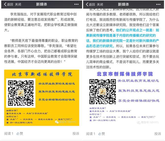 我们还找到了新媒体技师学院的公众号“新媒体”,虽未完成微信认证,但是根据账号介绍和发布内容来看,无疑是学院的官方微信。
