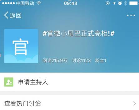 截至发稿前,#官方小尾巴正式亮相!#的微博话题的阅读量已达215.9万。