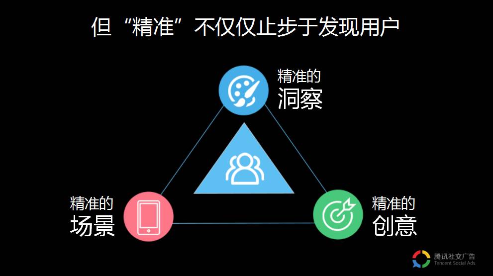 另外一个是“深度”。在我们的微信的投放端或者是e.qq.com的投放端,都能看到比这个多得多的、成百上千的主要关键词,甚至我们还可以定向挖掘关键词。可以得到用户的基本数据到他的兴趣属性,用户的商业兴趣到他的状态,其实这就是过去三年中大家说精准。我有非常深的理解,我对客户有非常深的理解,对用户的行为有非常准确的把握。这两点我觉得确实是我们引以为傲的能力,但是这光这些是不够的。