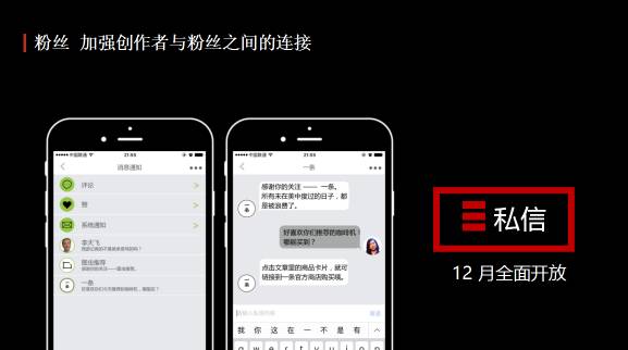 这是个性化分发技术为基础的自媒体平台的一个特点。但这并不意味着说我们不鼓励作者和粉丝之间互动和建立关系,我们还是做了非常多的事情,也希望能够让作者和粉丝之间有很好的互动和交流,12月的时候我们将会全面开放私信的功能。