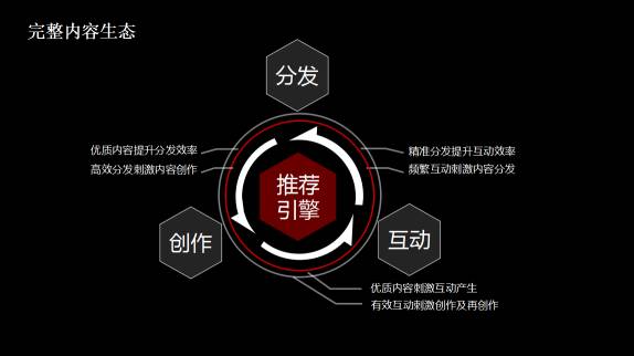 我们取得这样一个成绩跟我们构建了一个完整的内容生态是非常有关系的,在我们取得大概几千万安装用户的时候,我们就迅速建立了今天被我们称之为头条号的平台,也就是我开头提到的自媒体平台。我们为什么要做这件事?因为我们意识到要打造一个完整的内容生态,分发、创作和互动都是非常重要的,只有我拥有长尾的内容,才能做到个性化的分发,让每一个人的头条都可以千人千面。