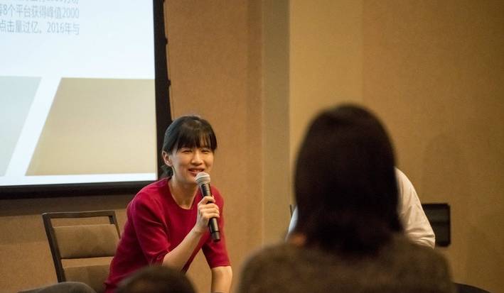 她依然是短视频中自然、清秀的模样,齐刘海、马尾辫、红色毛衫,只是开口不再是酣畅淋漓的吐槽,而是谈论内容与行业。这是她的第一次线下演讲。
