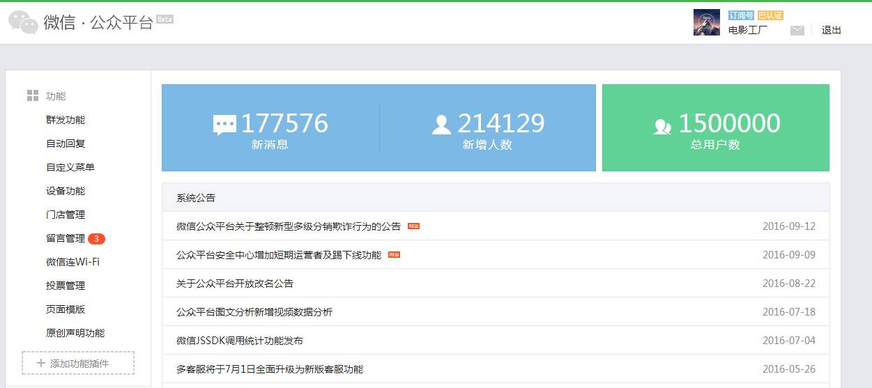 新榜讯 11月7日,有运营者和榜妹爆料,“电影工厂”粉丝数今日突破150万。据榜妹向运营者了解到,该账号9月6号的时候粉丝是80万,10月21号粉丝数破100万,11月7号粉丝破150万,两个月时间涨了70万粉丝。